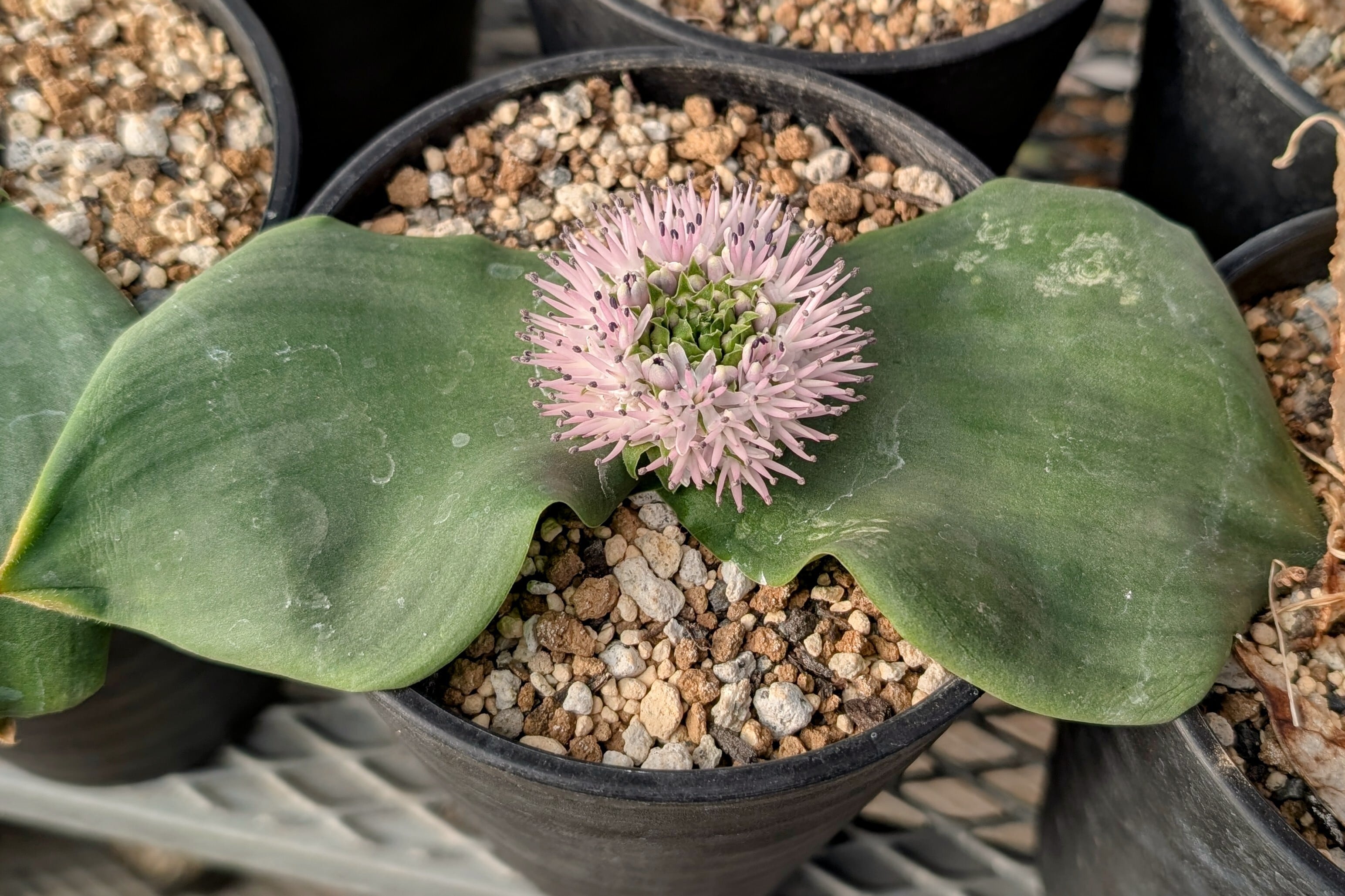 東ケープ州に分布するマッソニアの一種。他の多くのマッソニアと同様、夏になると落葉し地中の球根のみとなります。