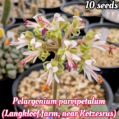 section Hoareaに分類される、地中に塊根をつくるタイプのペラルゴニウム。Langkloofという場所は南アフリカの多くに存在しますが、この系統の産地であるLangkloofはKotzesrusの近くにある農場です。