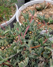 Odontophorus angustifolius(=Cheiridopsis angustifolia)も長い枝を伸ばすものの、枝がスポンジ質で株元に葉が群生しません。