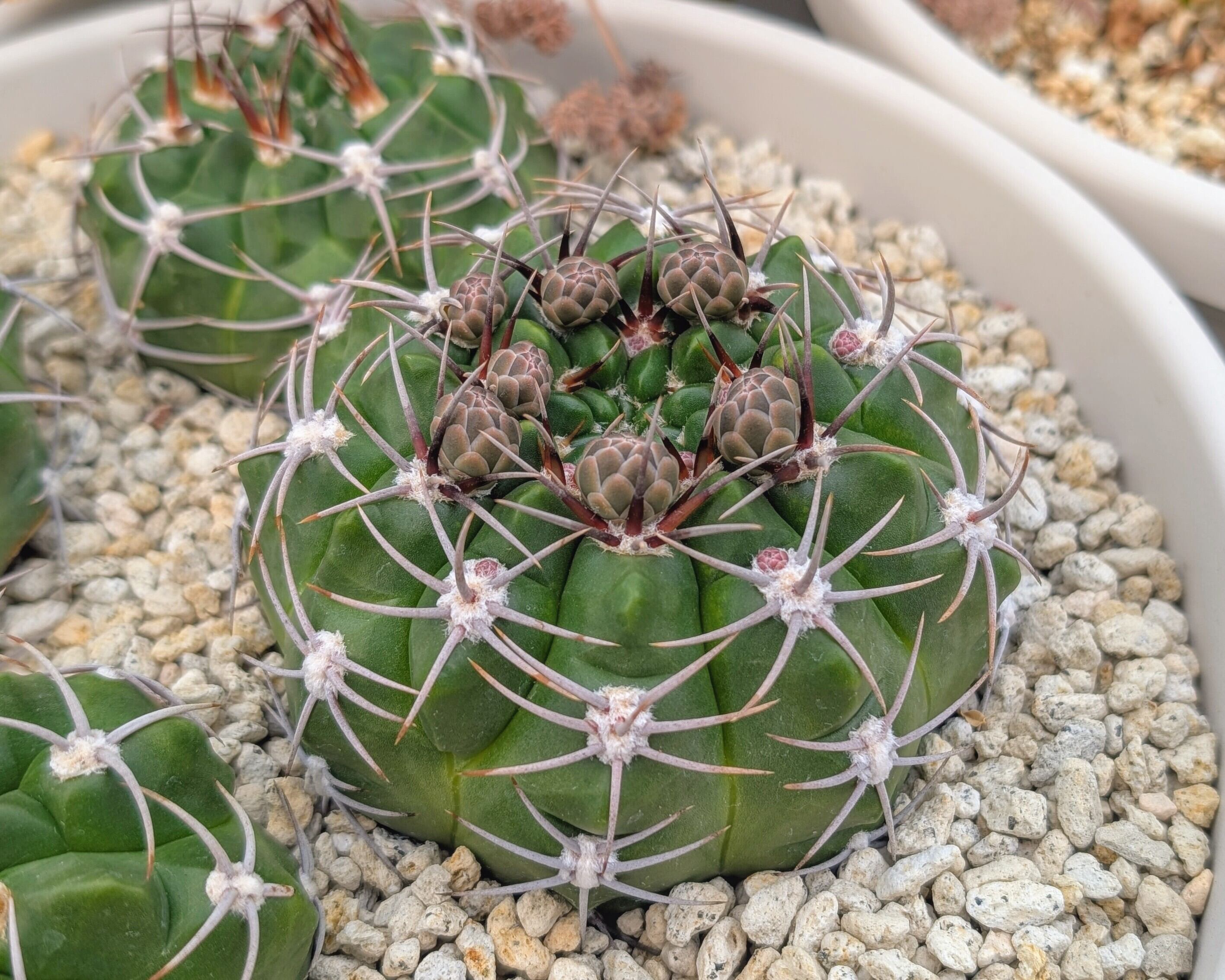 ギムノカリキウムは地域などによって形態差が大きい種が多く、産地ごとにコレクションする価値のあるサボテンです。本種も複数の亜種が記載されていますが、それらを区別せずシノニムとする場合もあるようです。