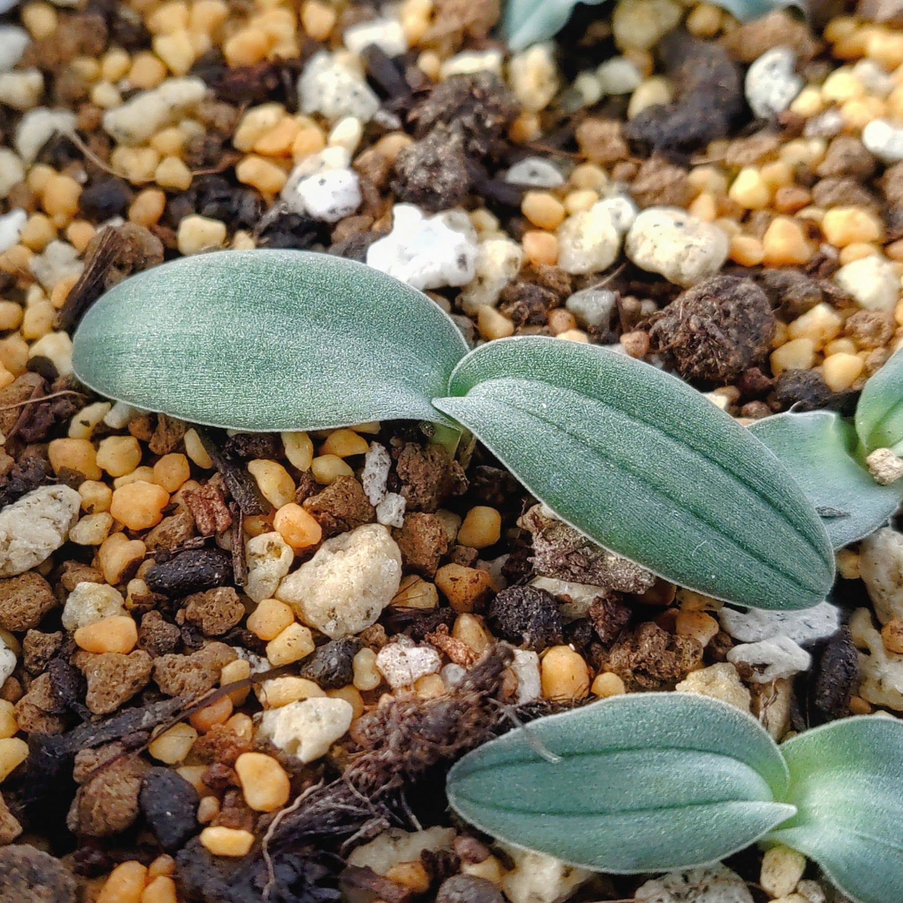 分布が広い故か形態的差異もそこそこあり、葉の大きさや枚数(1~2)、毛の生え方(ビロード状~毛羽立つもの)が地域などによって異なります。このCaledon産のものはビロード状です。