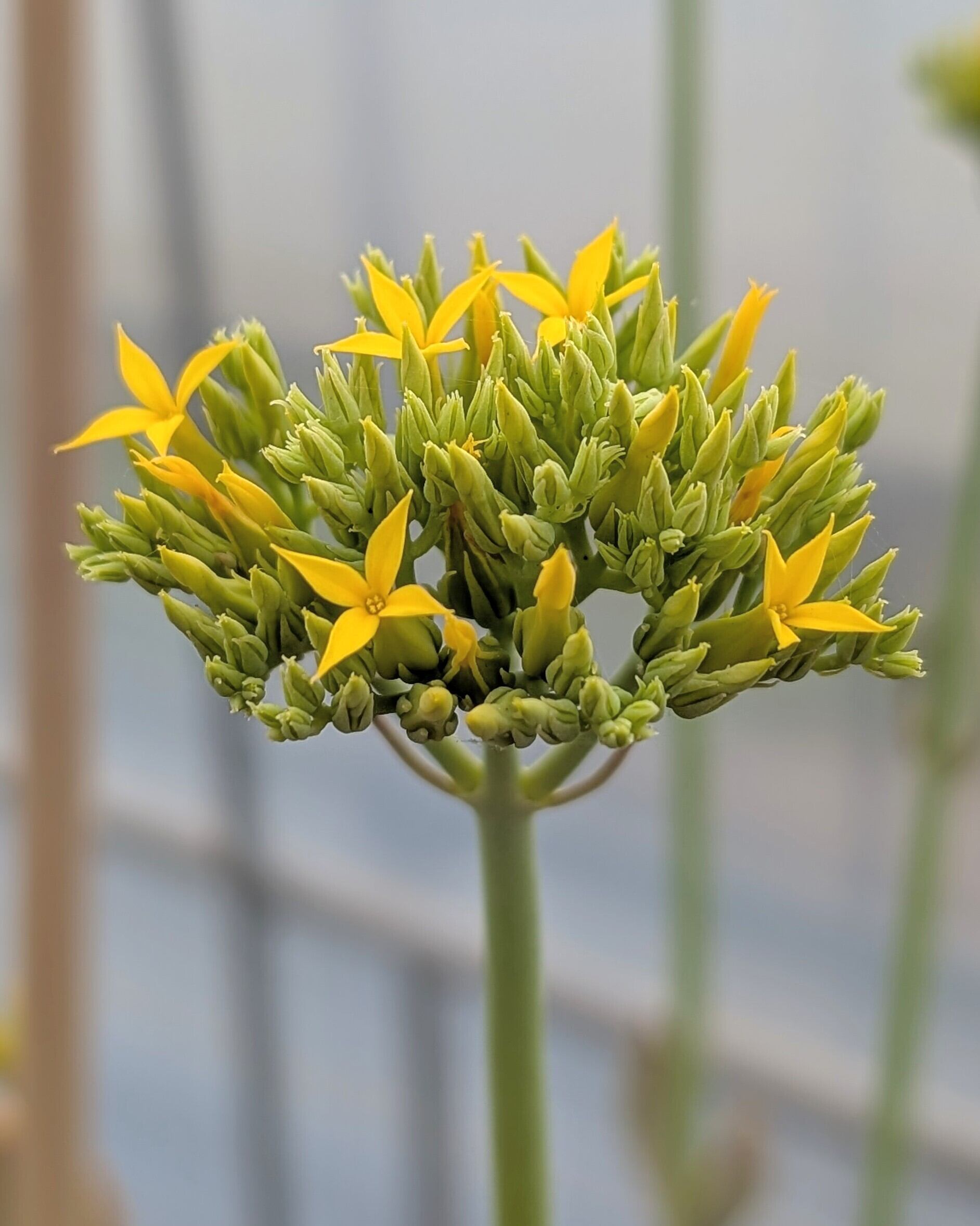 花茎の長さはその時によってバラつきがありますが、当方の環境では最大で2mほどにまで伸びました。花は鮮やかな黄色で、花冠裂片は細く先端が尖ります。