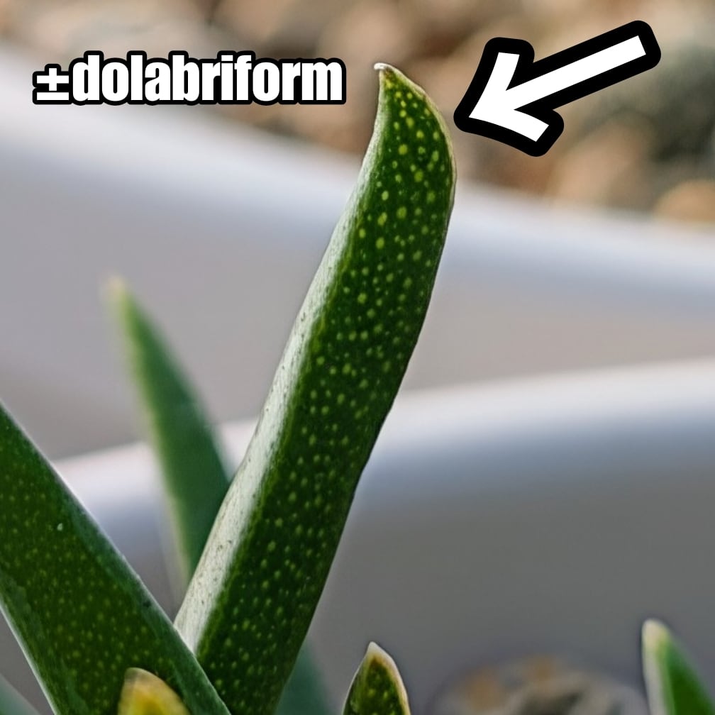 本種はPort ElizabethからGrahamstown周辺にかけて分布する種であり、形態的特徴としては葉が披針形/lanceolateで長さが最大10cmと大型で、先端が単に先細りになるのではなく若干“斧形/dolabriform”になります(画像3枚目)。パッと見では大型の三時草といった感じです。1つの花序あたり3~5つの黄色の花を夕方に咲かせますが、花の感じも三時草とよく似ています。