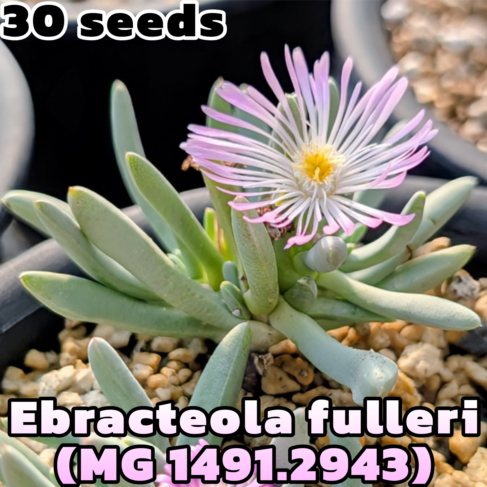 Ebracteolaは4種のみが知られるマイナーなメセンの属。E. fulleriは南アフリカ北西部からナミビア南部にかけて分布します。このMesa Gardenのカタログナンバー1491.2943は南アフリカ、Pofadderの近くで採集された系統。